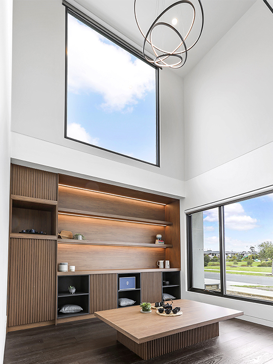 Within the display house, every cabinet has a different function, expressing the many stories of the home’s interior and showcasing SCO Design’s quality joinery skills. Great masterpieces such as the tearoom with its double-height ceiling, the hallway family cabinet, the wonderful home office and other innovative spaces are available for clients to explore, providing inspiration and displaying cabinetmaking at its best.