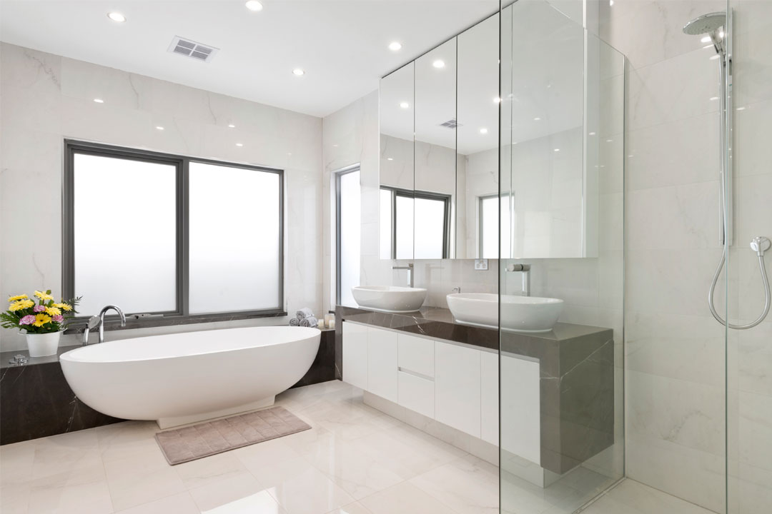 For the bathroom, the homeowner wanted a luxurious retreat where they could come home and unwind, but it also had to be practical and able to withstand everyday use.