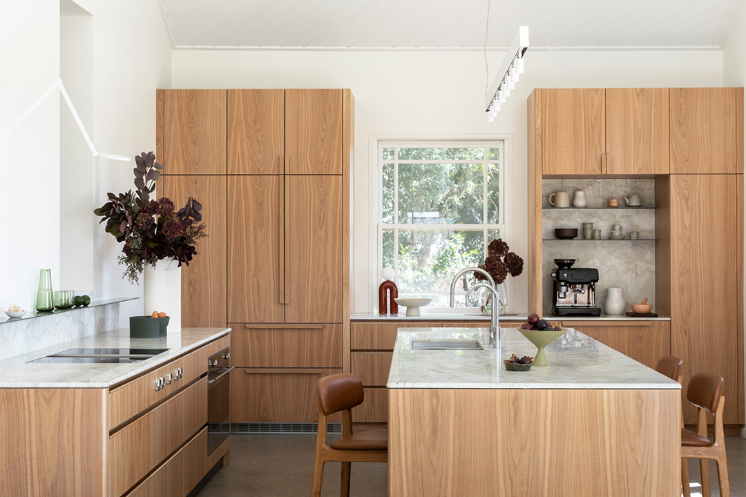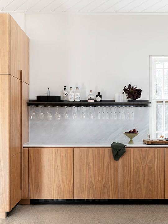Cantilever Interiors has delivered outstanding results with a stunning update to this home in the valley of the Strathbogie Ranges. Tasked with a renovation to update the home and capture the surrounding landscape, the company selected its EDIT system to install. Featuring American oak veneer and solid timber finger-pull handles, and curved corner detailing, it was the perfect option to incorporate the natural surrounds. By pairing locally sourced Australian dolomite natural stone benchtops and steel plate detailing, Cantilever Interiors has created a cohesive and captivating kitchen.