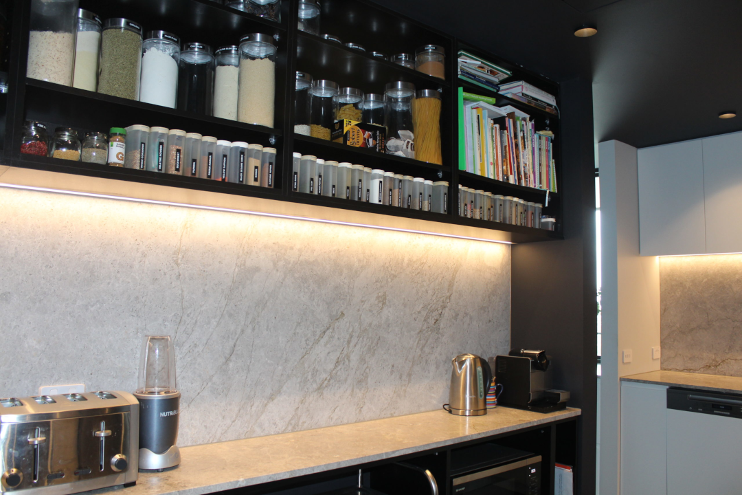 Sleek modern design and clever use of LEDs creates contemporary custom joinery for a whole home. From a full kitchen renovation to a roomy walk-in wardrobe, this stunning project from Romandini Cabinets is a picture of modern elegance.