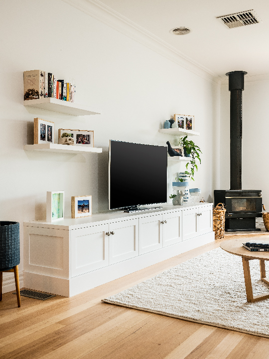 Consistency is achieved throughout not just the kitchen but the entire home, with the same stunning cabinetry installed in the adjoining open-plan living room and the laundry, proving Smith & Smith Kitchens masters at seamless renovations and design.