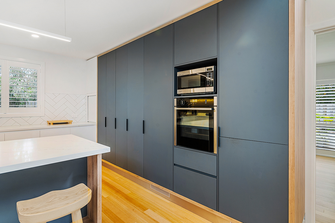 Bringing modern elegance, and waves of beautiful grey-blue within this stunning beachside project, Tulip Kitchens & Designs continues to produce exceptional quality projects from start to finish. Featuring slimline cabinetry with luxury bi-fold doors and generous island drawers, the talented team delivered not only the kitchen of the homeowners’ dreams but also a hidden European laundry that gives the space a dynamic multidimensionality.